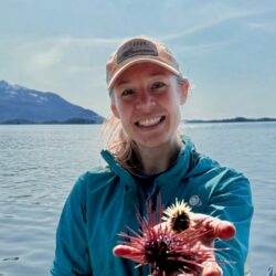 Taylor White, PhD (she/her), is a non-Native settler descendant and lifelong Sheetʼká (Sitka), Alaska inhabitant. As a community ecologist, she weaves together knowledge systems to explore how species and people interact across changing marine environments, with the aim of supporting equitable management strategies for evolving community relationships with nearshore species and ecosystems. Her dissertation research in Ecology and Evolutionary Biology at UC Santa Cruz, alongside collaborative community work, examined the dynamics between abalone, sea otters, and coastal communities across Lingít Aaní and Traditional Haida Territories.
